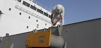 We use a special ultrasound device for this purpose. Testing is made prior to loading. We can perform hatch watertight testing by instruction of customer as a part of ON/OFF HIRE SURVEY.
